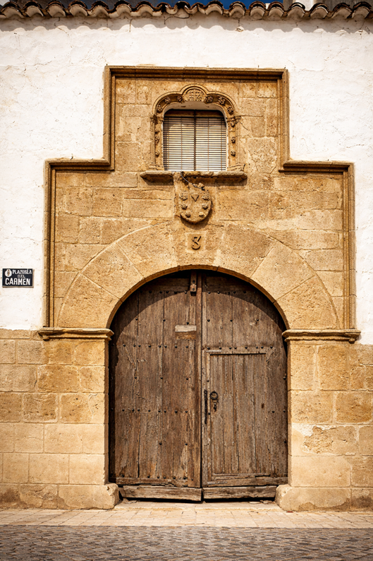 Puerta de casa con escudo de armas de los "ROSILLO" (foto editada con IA). Siglo XVI.