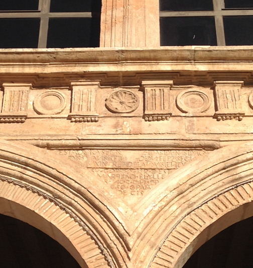 "Esta obra se empezó dos días del mes de agosto de 1585 años, reinando don Felipe II, Rey de España, y siendo su Corregidor de este Marquesado el Iltre. Sr. Don FRANCISCO ZAPATA DE CISNEROS [1]"