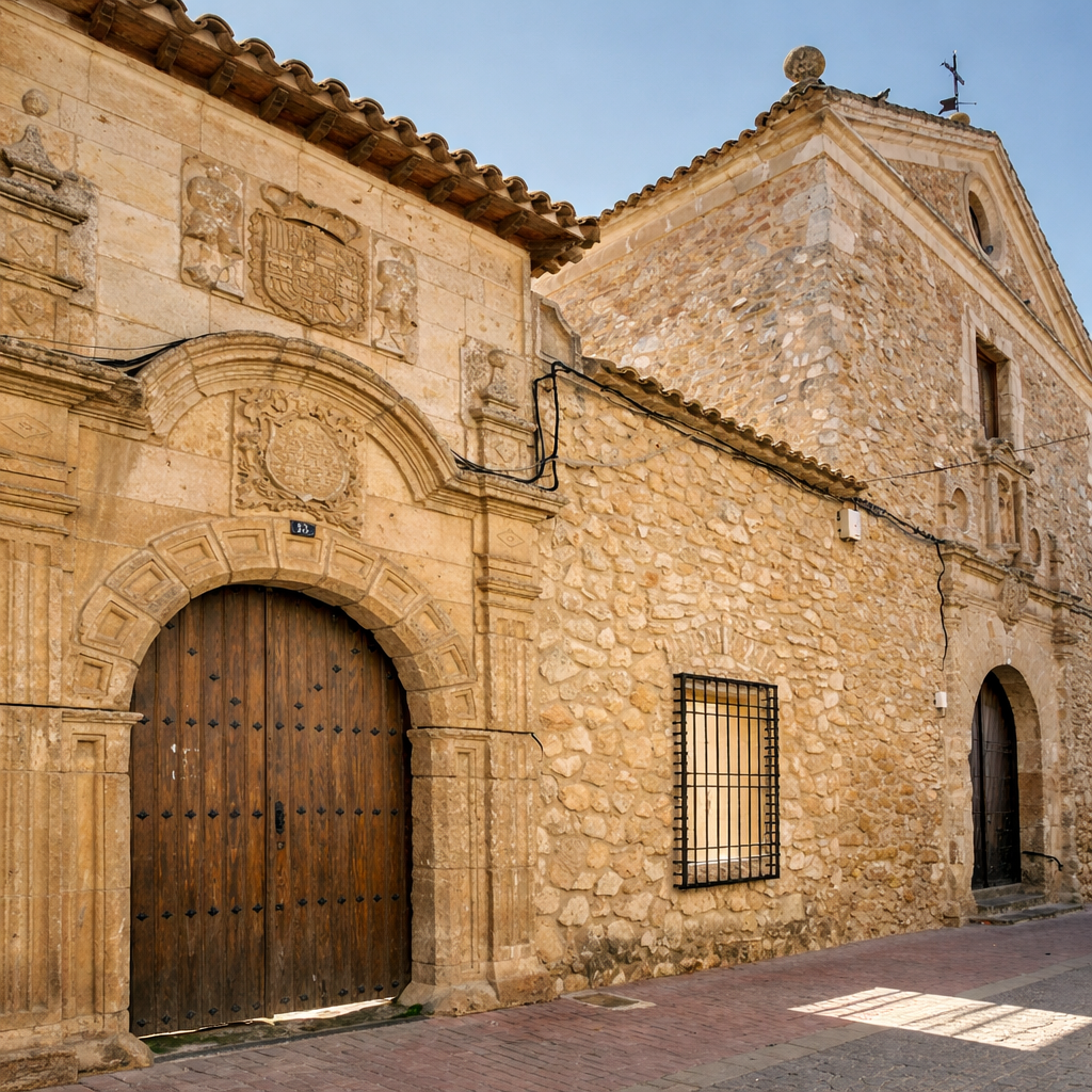 Antigua Ermita de peregrinos en la entrada a San Clemente por el camino de Belmonte, Las Pedroñeras y El Provencio (al menos, en 1527). Dos fotos editadas con IA: