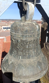 Las campanas llevan los nombres: San Francisco, Nuestra Señora del Carmen, Nuestra Señora de la Asunción, Nuestra Señora del Pilar, María de Rus...